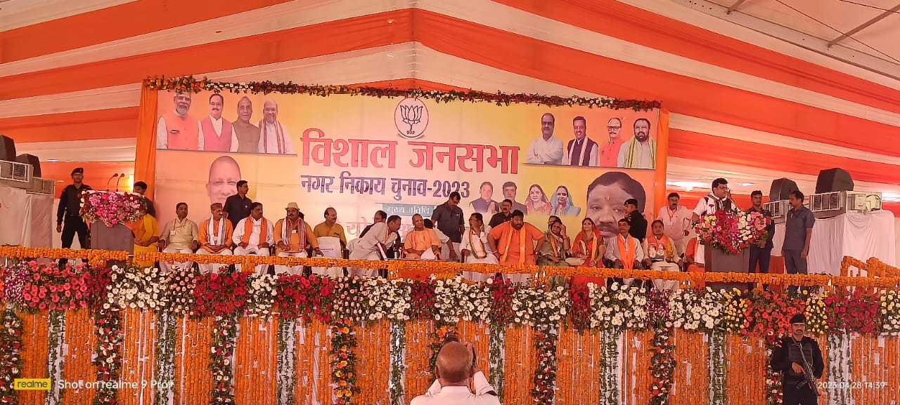 नगर निकाय चुनाव को लेकर बलरामपुर पहुंचे उत्तर प्रदेश मुख्यमंत्री, बलरामपुर के छोटे परेड ग्राउंड में जनसभा को किया संबोधित