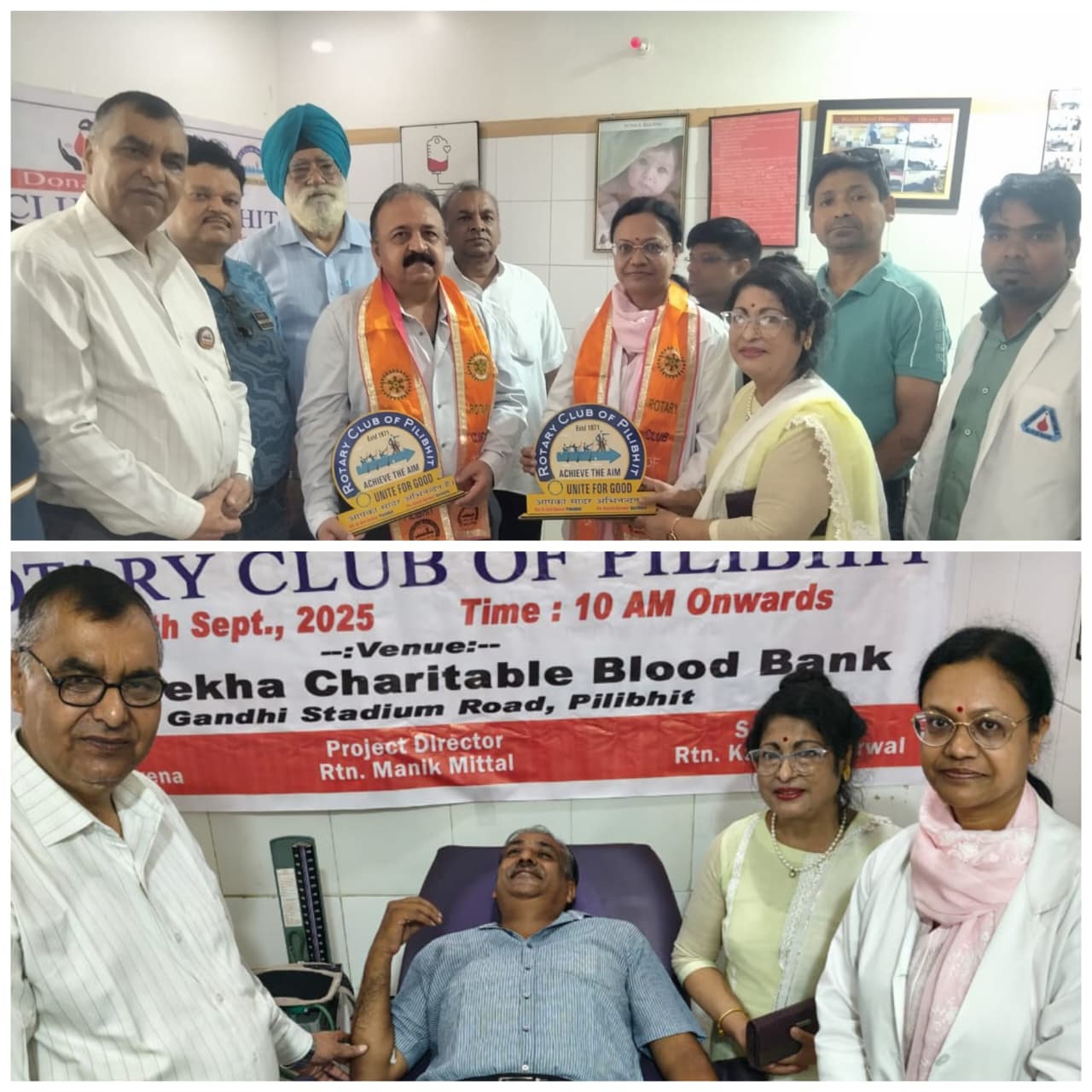 आज रोटरी क्लब पीलीभीत ने जीवन रेखा डायग्नोसिस सेंटर पीलीभीत में अपने सामाजिक कार्यों के अंतर्गत ब्लड डोनेशन कैंप का आयोजन किया,, ब्लड डोनेशन कैंप का उद्घाटन मुख्य चिकित्सा अधिकारी डॉक्टर आलोक शर्मा ने किया ,रोटरी क्लब के स्वास्थ्य के कार्यों की भूरी भूरी प्रशंसा की तथा इस कार्यक्रम की सराहना की, कार्यक्रम में जीवन रेखा चैरिटेबल ब्लड बैंक की डॉ.नीलम अग्रवाल, चंद्र मेडिकल सेंटर के डॉ. महेश चंद्र, जिला चेयर ब्लड डॉ. एसपीएस संधू, रोटरी क्लब पीलीभीत अध्यक्ष डॉ.अनिल सक्सेना अध्यक्ष, सचिव कपिश अग्रवाल , रोटरी ग्रेटर के अध्यक्ष डॉअनुज अग्रवाल. सचिव डॉ.पवन कटिहार ,रोटरी मातृ शक्ति अध्यक्ष अदिति जैस्वाल. सचिव रूपाली अग्रवाल, पीलीभीत नीमा फोरम अध्यक्ष डॉ. अनुरीता सक्सेना सचिव डॉ दीपा मिश्रा उपस्थित रहे।।कार्यक्रम में स्थानीय रोटरी क्लब ग्रेटर,रोटरी क्लब मातृशक्ति क्लब ,ग्रेटर वूमेन नीमा क्लब ने भी सहयोग किया, आज क्लब के अनेक सदस्यों एवं उनके परिवार जनों ने समाज के अत्यधिक आवश्यक उपयोगिता कार्यक्रम एवं मेडिकल की अभूतपुर व आवश्यकता को देखते हुए अपने खून का दान किया ।।लगभग 35 सदस्य रक्तबीर सम्मान से सुशोभित हुए, सभी को रोटरी क्लब की ओर से एक सर्टिफिकेट तथा एक कार्ड से सम्मानित किया गया,, जिससे किसी को भी एक यूनिट रक्त दान दिया जा सकता है,, कार्यक्रम की विशेषता रही डॉक्टर प्रोफेसर प्रणव शास्त्री का 52 वा हुआ रक्तदान,कार्यक्रम प्रातः 9:00 बजे से टाइम 3:00 बजे तक चला कार्यक्रम में रो.अश्विनी अग्रवाल,रो. अनिल अग्रवाल ,रो.अंकुर जायसवाल, रो. मलिक मित्तल, रो.अजीत बाजपेई, रो. ईश बंसल, रो. पूजा कोहली, रो. कार्तिक भसीन, रो. नितिन अग्रवाल, रो, हेमंत जगोटा, रो .डॉ. शोभित सेठ, रो. शैशव अग्रवाल, रो. नीतीश अग्रवाल, प्रोफेसर डॉ. प्रणव शास्त्री, डॉ वी के श्रीवास्तव, डॉ अलका श्रीवास्तव आदि रोटेरियन मौजूद थे।।