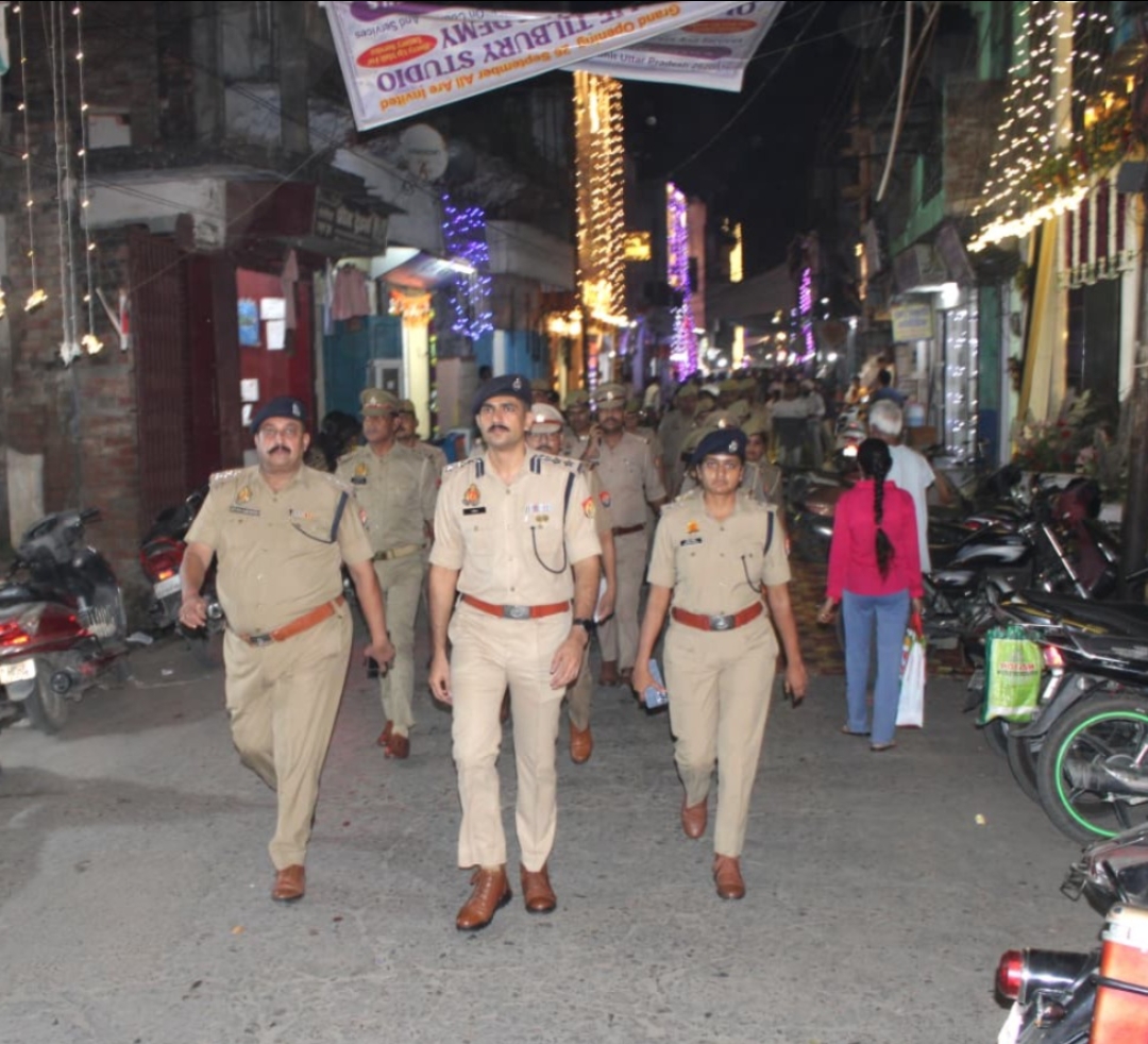 *पुलिस अधीक्षक अभिषेक यादव द्वारा आगामी पर्व दीपावली आदि को सकुशल सम्पन्न कराने* एवं जनपद में शान्ति/कानून व्यवस्था के दृष्टिगत नगर क्षेत्रान्तर्गत प्रमुख बाजारों, व्यस्त चौराहों, मिश्रित आबादी वाले क्षेत्रों एवं अन्य संवेदनशील स्थानों पर पैदल गश्त/फ्लैग मार्च कर सुरक्षा व्यवस्था का जायजा लिया गया। पुलिस अधीक्षक द्वारा नगर क्षेत्रान्तर्गत प्रमुख बाजारों, व्यस्त चौराहों, मिश्रित आबादी एवं संवेदनशील स्थलों पर भ्रमण करते हुए आमजन व व्यापारियों से संवाद स्थापित कर शांति, सौहार्द एवं आपसी भाईचारा बनाए रखने की अपील की गई।