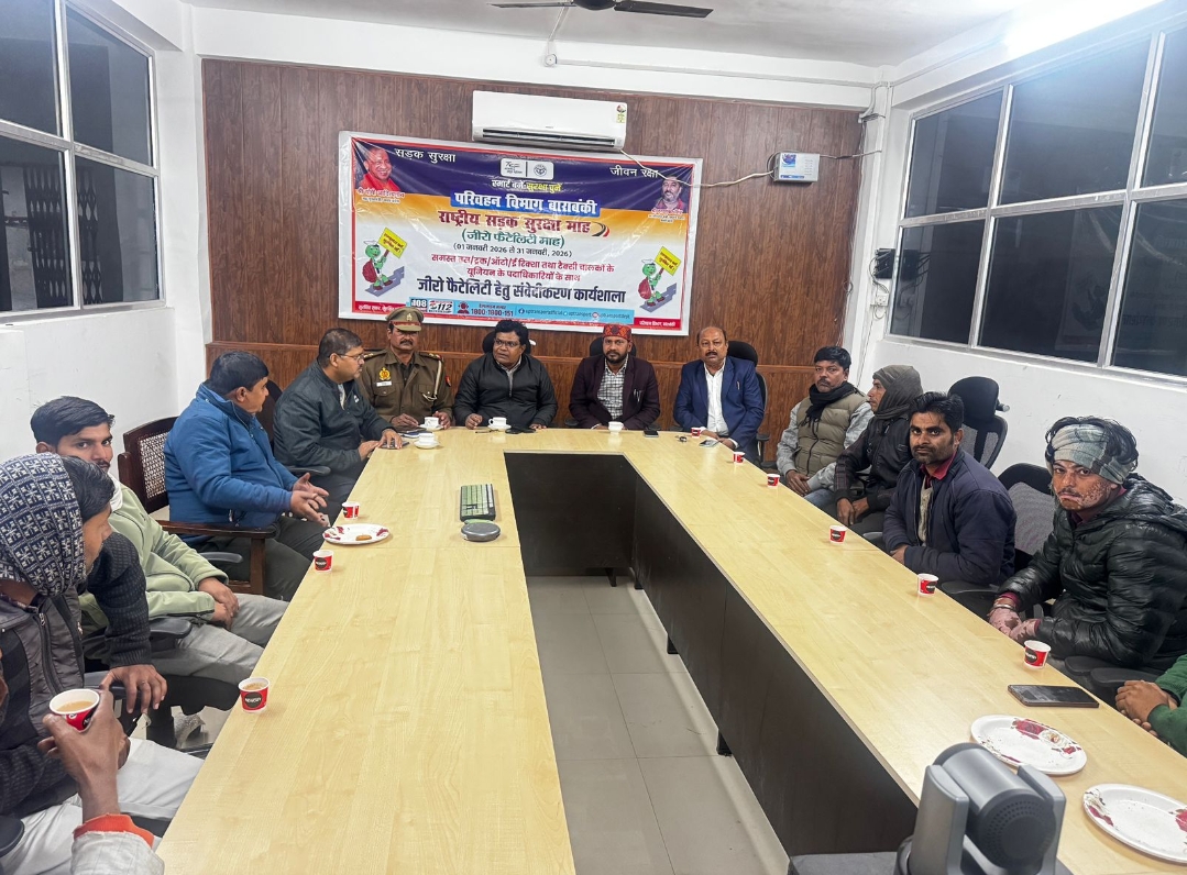 बाराबंकी। परिवहन विभाग द्वारा 01 से 31 जनवरी तक चलाये जा रहे राष्ट्रीय सड़क सुरक्षा माह के अन्तर्गत आज शुक्रवार को उप सम्भागीय परिवहन कार्यालय परिसर मे बस, ट्रक, आटो, ई-रिक्शा, टैक्सी चालक यूनियन पदाधिकारियो के साथ जीरो फैटेलिटी हेतु संवेदीकरण जागरुकता कार्यशाला का आयोजन किया गया। कार्यशाला मे सम्भागीय निरीक्षक प्राविधिक बलवन्त सिंह यादव ने चालको को जागरुक करते हुये कहा कि सड़को पर तेजी से बढ़ती दुर्घटनाओं के कारण यह काफी जरुरी है, कि इसके लिए निवारक उपाय अपनाएं जायें। क्योंकि मात्र इन्हीं के द्वारा ही हम मानवीय कारणों से होने वाली सड़क दुर्घटनाओं को रोक सकते हैं। नियमों की पूरी जानकारी रखे और सदैव इनका पालन करें। हेलमेट, सीटबेल्ट, ओवरस्पीडिंग, ड्रिंक एण्ड ड्राईव एवं वाहन चलाते वक्त मोबाईल का प्रयोग न करने एंव अन्य सड़क सुरक्षा नियमों को लेकर विस्तृत जानकारी दी। कार्यशाला मे यातायात प्रभारी रामयतन यादव ने कि दुर्घटना का मुख्य कारण थकान, लापरवाह चालक, नशाकर तेजी से वाहन चलाना है। सुरक्षित ड्राइविंग के लिये आवश्यक है कि लंबी दूरी तय करते समय थकान होने पर वाहन रोककर खुद को और वाहन को सामान्य स्थिति मे आने दे। ताकि नींद के मारण संभावित दुर्घटना न होने पाये। कार्यशला मे ट्रक एसोसिशन अध्यक्ष अधिवक्ता अंगद वर्मा समेत स्टैण्ड़ के चालक मौजूद रहे।