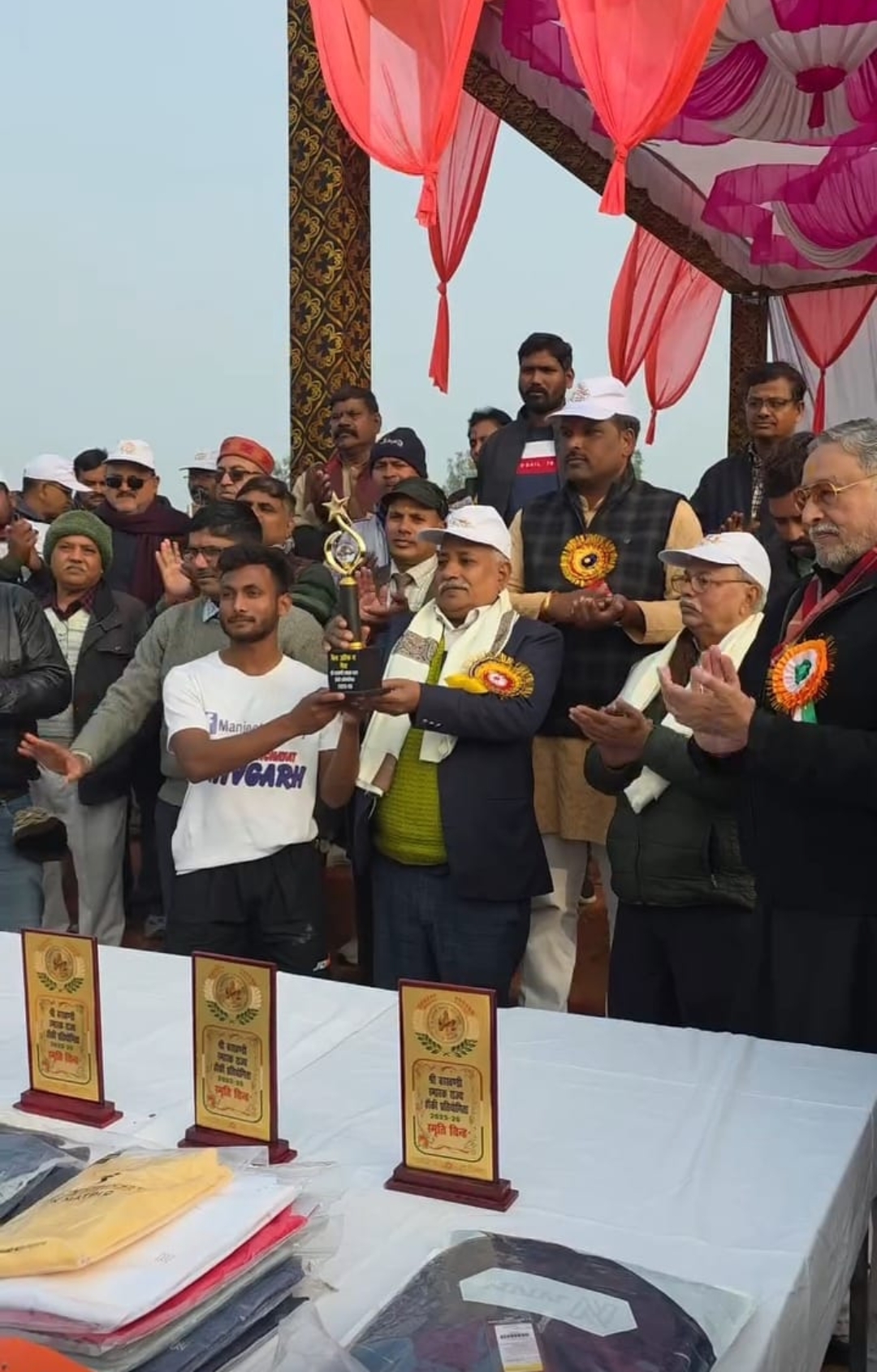 शिवगढ़ रायबरेली शिवगढ़ नगर पंचायत के शिवगढ़ कस्बा स्थित श्री बनखंडी विद्यापीठ इंटर कॉलेज शिवगढ़ के मैदान में चल रही ऐतिहासिक राज्य हॉकी प्रतियोगिता का फाइनल मैच नगर पंचायत शिवगढ़ व मत्रा इलेवन, गोंडा के मध्य खेला गया , प्रतियोगिता के फाइनल में पहलागोल शिवगढ़ के खिलाड़ी राहुल ने सातवें मिनट पर दागा दूसरागोल 29 वेमिनट में विजय ने किया खेल के36वॆ मिनट मिनट में इमरान द्वारा तीसरा गोल किया गया खेल के दौरान अनुशासनहीनता के चलते खिलाड़ियों को ग्रीन कार्ड दिखाकर 1 मिनट के लिए बाहर बिठाया गया गोंडा के अवनीश पटेल को चौथे मिनट पर शिवगढ़ के खिलाड़ी दानिशको 13वॆ मिनट गोंडा के अंकित को 13 मिनट ॵरगोंडा टीम ने खिलाड़ी मनोज को 53 मिनट में ग्रीन कार्ड दिखाया गया गोंडा के अवनीश पटेल को चौथे मिनट पर शिवगढ़ के खिलाड़ी दानिश को 13 मिनट गोंडा के अंकित को 13व़मिनट पर तथा गोंडा टीम के खिलाड़ी मनोज को 53 में मिनट पर ग्रीन कार्ड दिखाया गया मैन ऑफ द मैच शिवगढ़ टीम के शौर्य जीत रहे और मैन ऑफ द सीरीज गोंडा टीम के आकाश यादव को दिया गया प्रतियोगिता के मुख्य अतिथि रिटायर्ड बैंक आफ इंडिया के वरिष्ठ शाखा प्रबंधक उमाशंकर वर्मा तथा विशिष्ट राजेश कुमार रहे विद्यालय संरक्षक पूर्व एमएलसी राजा राकेश प्रताप सिंह ने कहा कि ग्रामीण क्षेत्र में पूर्वजों द्वारा चलाई गई हां की प्रतियोगिता को अनवरत आयोजित किया जा रहा है जिसमें प्रदेश के विभिन्न जनपदों से टी में प्रति भाग करती है श्री बरखंडी विद्यापीठ इंटर कॉलेज शिवगढ़ के प्रधानाचार्य राजकुमार गुप्ता ने सभी का आभार व्यक्ति किया इस मौके पर भाजपा मंडल अध्यक्ष अवधेश त्रिवेदी सचिन शैलेंद्र सिंह पवन सिंह शालू गुप्ता डॉक्टर बृजेश सिंह सहित हजारों की संख्या में लोग उपस्थित रहे