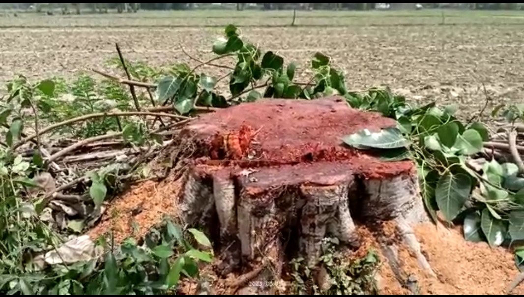मिलीभगत के चलते हरियाली के कातिलों ने पीपल के वृक्ष का कटान कर लगाया ठिकाने