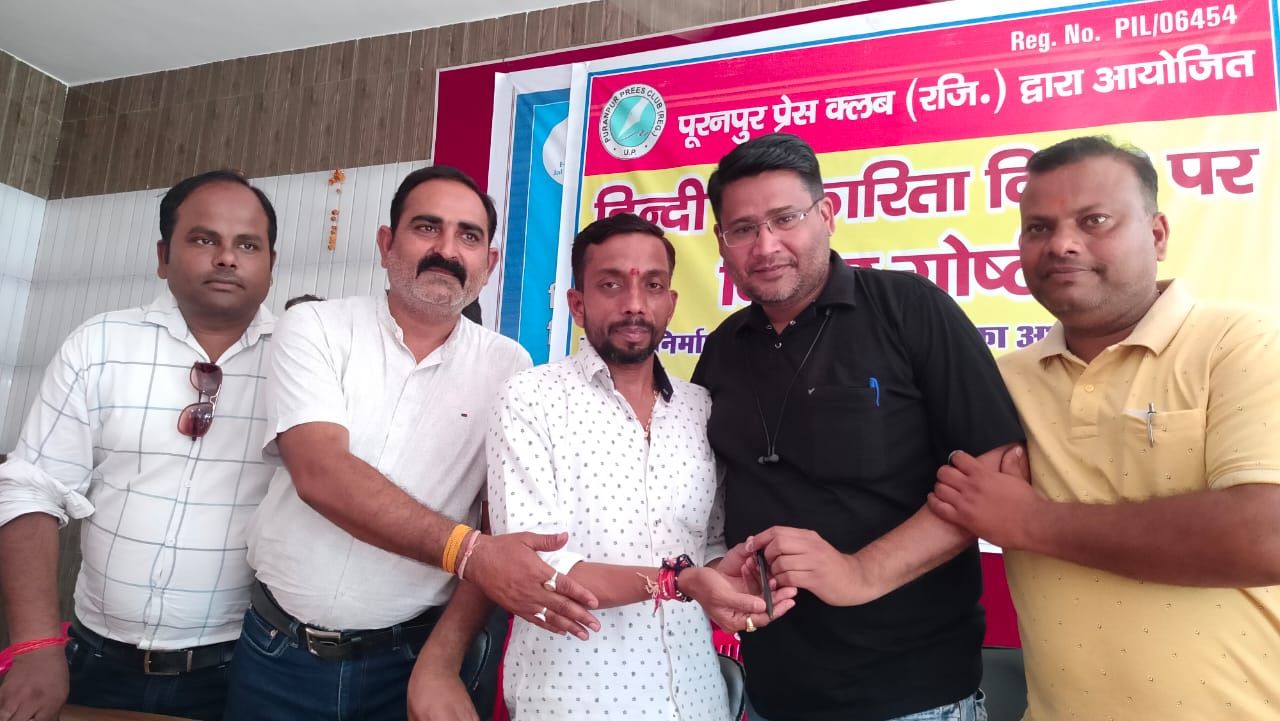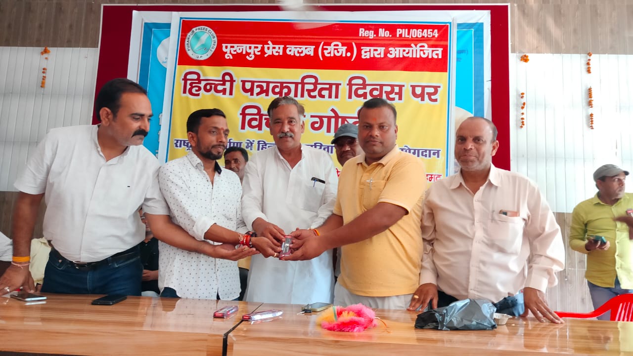 पूरनपुर। हिंदी पत्रकारिता दिवस के अवसर पर पूरनपुर प्रेस क्लब द्वारा विचार गोष्ठी का आयोजन किया गया। इस दौरान विधायक पुत्र, क्षेत्र प्रमुख सहित प्रधान संगठन जिलाध्यक्ष व पूरनपुर चेयरमैन की मौजूदगी रहिए। विचार गोष्ठी में पत्रकारों के हितों की रक्षा करने के साथ ही वर्तमान परिवेश में समाचार संकलन में आने वाली कठिनाइयों के साथ समाचार प्रकाशन के उपरांत उत्पन्न होने वाली जटिल समस्याओं को दूर करने का रास्ता खोजने पर चर्चा हुई।