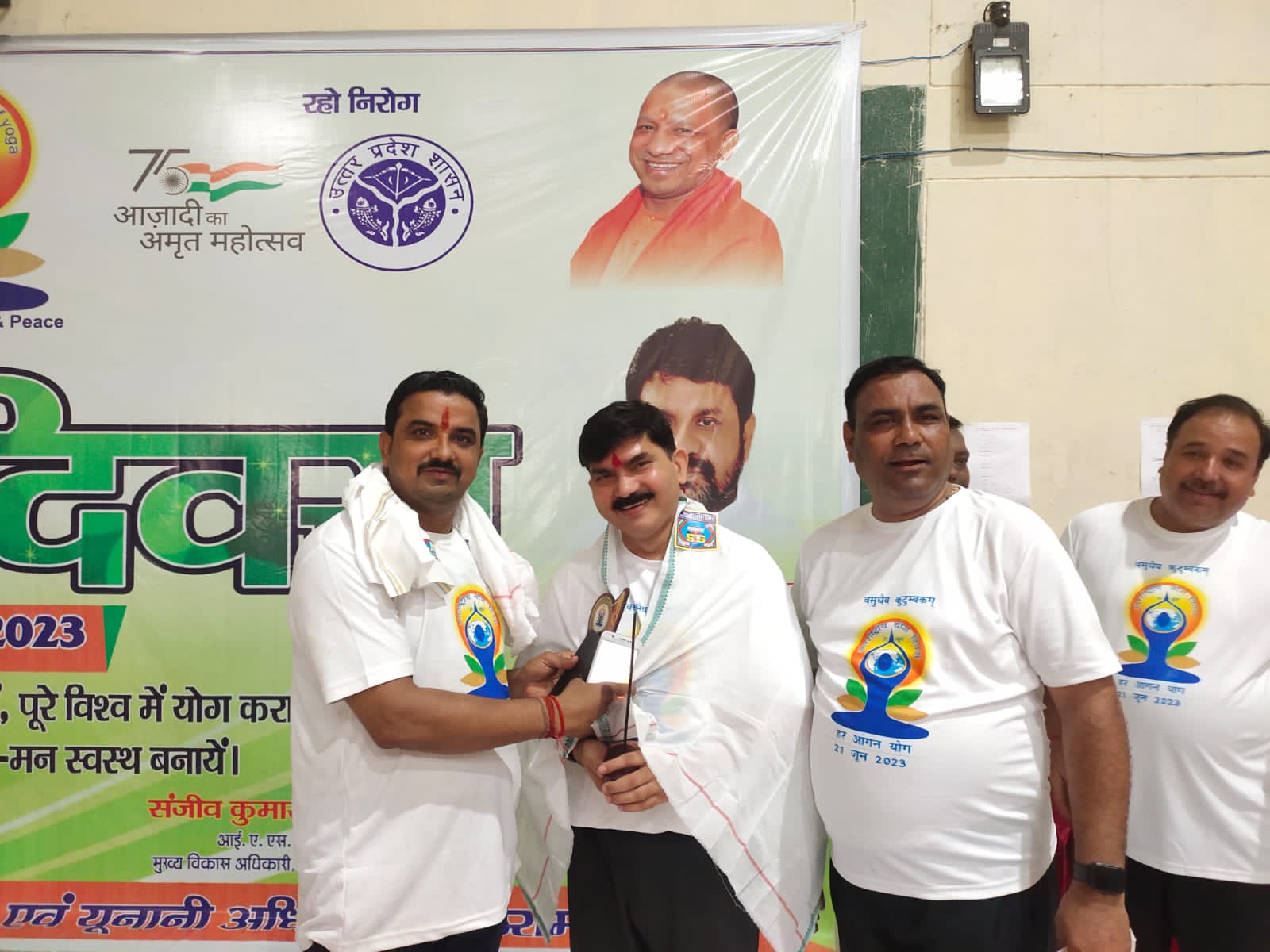 योग शिविर के बाद डॉ आर एन सिंह द्वारा राष्ट्रगान कराया गया कार्यक्रम के समाप्त होने के बाद क्षेत्रीय आयुर्वेदिक एवं यूनानी अधिकारी के द्वारा अधिकारियों सहित डॉ आर एन सिंह को मोमेंटो देकर सम्मानित किया गया तथा रविंद्र कुमार गुप्ता कमलापुरी के द्वारा अधिकारियों और डॉ आर एन सिंह YCB आयुष मंत्रालय भारत सरकार एवं चेयरमैन शौर्य प्राकृतिक चिकित्सा एवं योग शिक्षण संस्थान बलरामपुर यूपी एफिलिएटिड योग सर्टिफिकेशन बोर्ड आयुष मंत्रालय भारत सरकार एवं फिट इंडिया खेल मंत्रालय भारत सरकार को अंग वस्त्र देकर सम्मानित किया ।