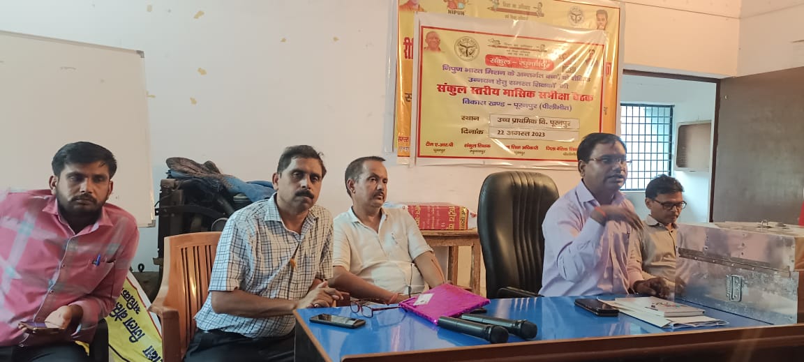 संकुल स्तरीय शिक्षक मासिक संगोष्ठी बीईओ की अध्यक्षता में आयोजित हुई। संगोष्ठी में बीईओ ने बच्चों को निपुण बनाने पर विशेष बल दिया। संकुल रघुनाथपुर के उच्च प्राथमिक विद्यालय पूरनपुर में मंगलवार को संकुल स्तरीय शिक्षक सामूहिक संगोष्ठी खण्ड शिक्षाधिकारी विजय वीरेंद्र सिंह की अध्यक्षता में आयोजित हुई। संगोष्ठी में विद्यालय के इं. शिक्षक ब्रजेश शुक्ला ने आए हुए सभी शिक्षकों का आभार व्यक्त किया। संगोष्ठी में बीईओ विजय वीरेंद्र सिंह ने निपुण भारत मिशन पर सभी शिक्षकों से अपने विद्यालयों के बच्चों को अच्छी शिक्षा देने हेतु प्रेरित किया। संगोष्ठी में शिक्षकों द्वारा गणित एवं विज्ञान किट का प्रदर्शन करते हुए उसके सदुपयोग के बारे में विस्तार पूर्वक चर्चा साझा की गई एवं कई बिंदुओं पर विस्तृत जानकारी दी गई। संगोष्ठी में कई शिक्षकों ने अपने स्व निर्मित टीएलएम का बेहतरीन प्रदर्शन कर बच्चों को पढ़ाने के तौर तरीक़े बताए। जिसमें उनके कार्यों की सभी ने सराहना की। संगोष्ठी में नोडल शिक्षक ऋषि सक्सेना, ब्रजेश शुक्ला, रोहित मिश्रा, कपिल पांडेय, राधाकृष्ण कुशवाहा, वजाहत मियां, कंचन देवी कुशवाहा, सुनीता देवी, राजेश्वरी, गुरप्रीत कौर, इंदु गंगवार, शेखर दीक्षित, नाजिया खानम सहित दर्जनों शिक्षक, शिक्षामित्र, अनुदेशक मौजूद रहे।