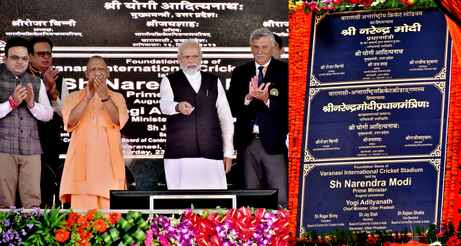 प्रधानमंत्री ने जनपद वाराणसी में 451 करोड़ रु0 की लागत से 30.66 एकड़ क्षेत्र में बनने वाले अन्तरराष्ट्रीय क्रिकेट स्टेडियम का शिलान्यास किया