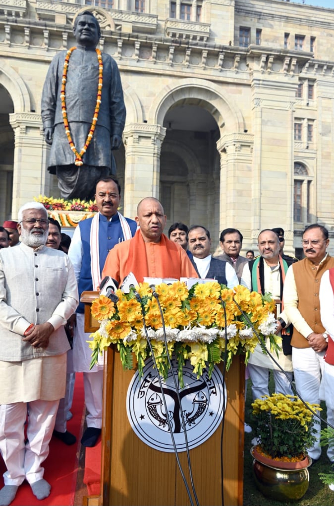 मुख्यमंत्री योगी आदित्यनाथ ने कहा कि आज भारत माता के महान सपूत, भारत रत्न श्रद्धेय अटल बिहारी वाजपेयी जी की पावन जयन्ती है। आज का दिवस सुशासन दिवस के रूप में मनाया जा रहा है। अटल जी भारतीय राजनीति के अजातशत्रु थे। उन्होंने भारत को राजनीतिक अस्थिरता से उभारने का कार्य किया तथा देश की राजनीति में शुचिता और पारदर्शिता का एक आदर्श प्रतिमान सबके सामने रखा। अटल जी का जन्म 25 दिसम्बर, 1924 को मध्य प्रदेश के ग्वालियर में हुआ था। जनपद आगरा का बटेश्वर स्थान उनकी पैतृक भूमि के रूप में जाना जाता है। उत्तर प्रदेश के प्रति खास लगाव के कारण उन्होंने अपनी शिक्षा तथा कर्मभूमि के लिए उत्तर प्रदेश का चयन किया।